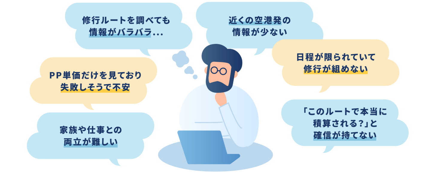 ANA(SFC)・JAL(JGC)を中心に、お客様の条件に応じた修行設計に対応しています。